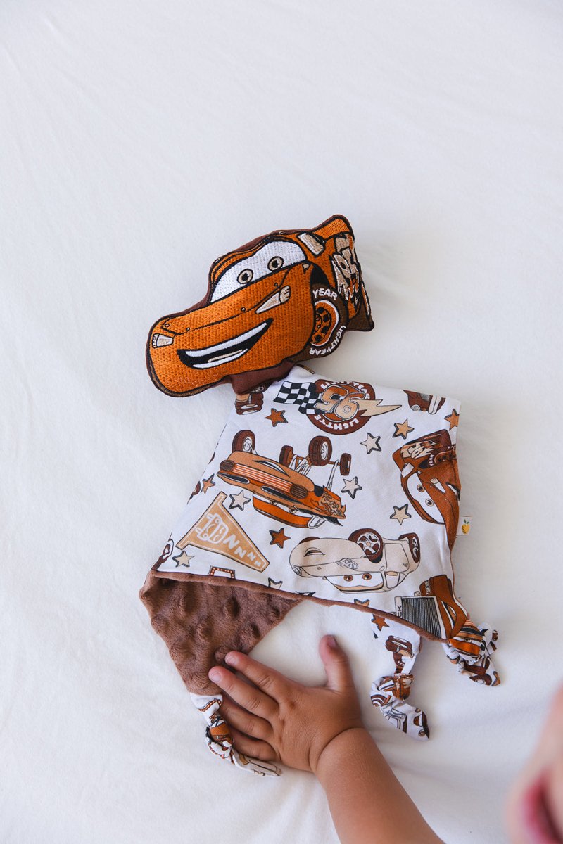 The cuddle companion they’ll reach for again and again. Scoots Loveys feature a buttery-soft printed front, plush minky backing, and an attached coordinating character stuffy that’s impossible to leave behind.