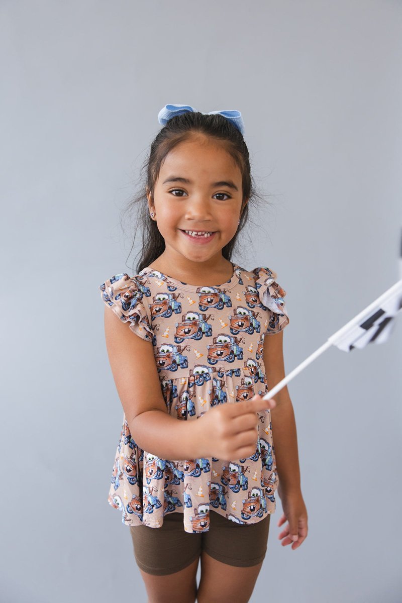 Complete with a darling peplum top and matching biker shorts, these sets bring both style and comfort to your child's wardrobe, crafted from premium bamboo materials by Scoots. Perfect for any adventure!